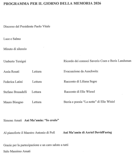 Giornata della Memoria " Per non dimenticare la Shoah" - Ore 11:00